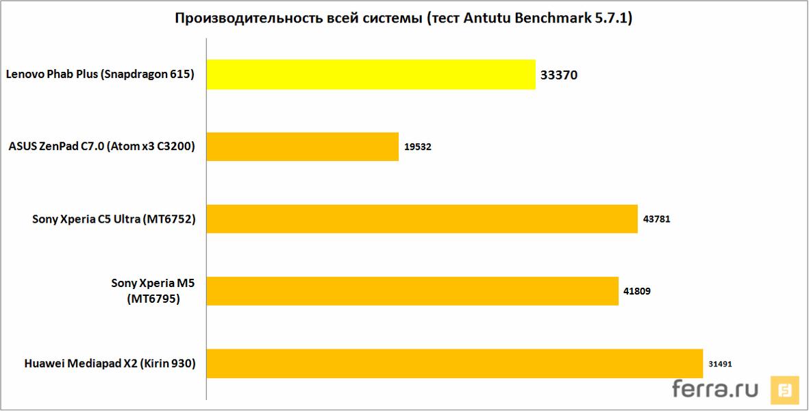 В плане выносливости Phab Plus приятно удивляет — ради такого дела стоило-таки бить программистов по рукам, чтобы ты не фаршировали прошивку излишествами. Потому что при смешной ёмкости аккумулятора порядка 3500 мАч (3400 мАч установлено в тонкой Sony Xperia Z5 Premium, например) планшетофон работает несравнимо дольше, чем иные 7-дюймовые планшеты.