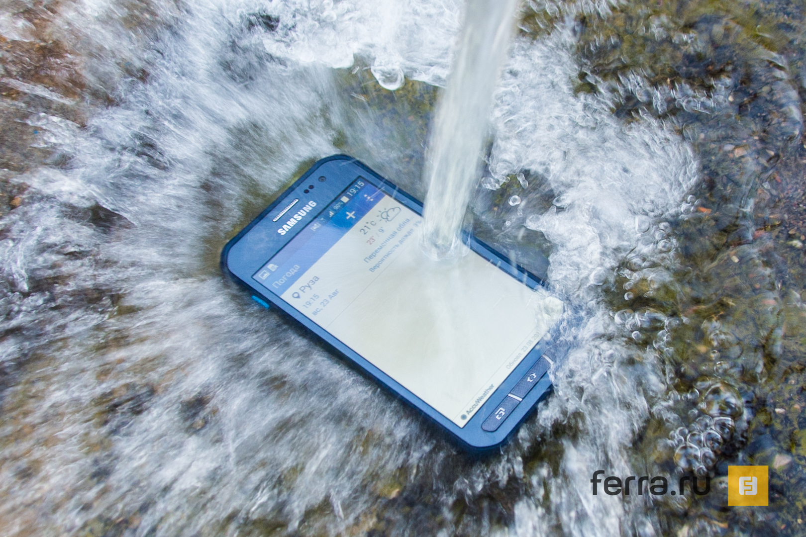 Samsung Galaxy Xcover 3 в потоке воды