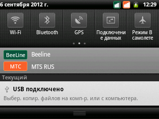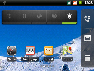 Смартфон работает под управлением ОС Android версии 2.3.6, и об обновлении до ICS ему даже мечтать не приходится. Интерфейс производитель почти не трогал, лишь добавил в зону уведомлений ярлыки для основных настроек: уровня яркости, профилей громкости звука и включения модулей связи. Список приложений и меню настроек остались без изменений. На экране блокировки почему-то нет никаких кнопок для, собственно, разблокировки – для этого нужно просто ещё раз нажать клавишу питания.