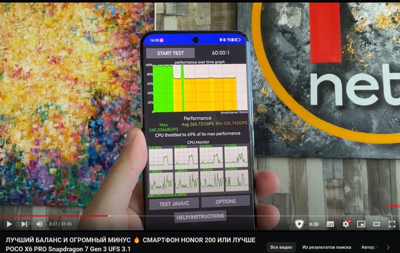 - Троттлинг процессора (перегрев и падение производительности). Опять приходится выступать адвокатом HONOR, но что поделать. Во-первых, почти все обзоры, которые делались до 20 июля 2024 г., делались по китайской версии смартфона. После 20 июля начали появляться обзоры глобальной версии. Любой, кто хоть раз покупал китайские версии смартфонов Huawei, HONOR, Realme, Oppo, Vivo, OnePlus и др. знает, что даже при одинаковом «железе» эти смартфоны работают иначе и склонны «глушить-душить» не-китайские приложения (а ещё с уведомлениями приложений постоянные проблемы, но это ладно). Короче, в глобальных HONOR 200 процессор настроен иначе.