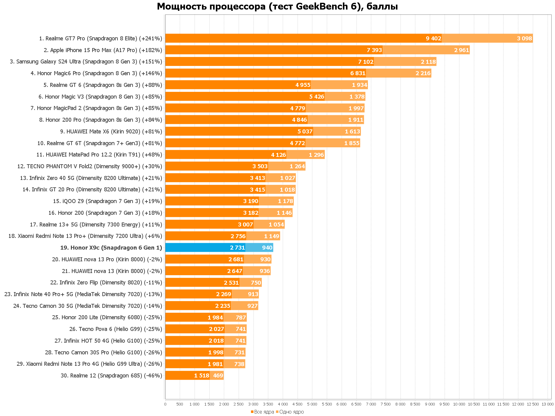 При этом, как видите на графиках, у HONOR 200, который стоит почти столько же, как раз есть Snapdragon 7 Gen 3, который тоже экономичен и быстрее на те самые заветные 20% в приложениях. Что, субординация мешает смартфону X-серии дать полноценно быстрый процессор?