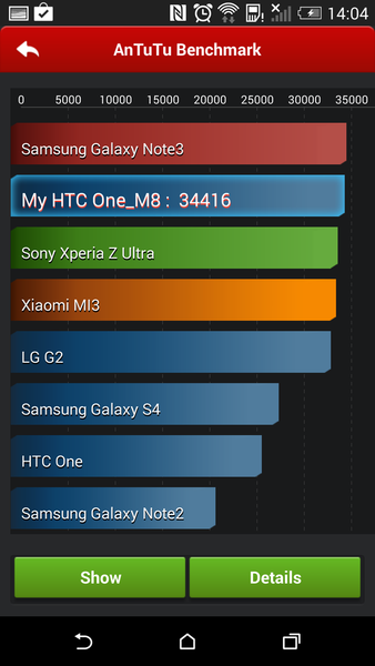 Сердце смартфона — это процессор Qualcomm Snapdragon 801 с четырьмя ядрами и графикой Adreno 330. Стоит отметить, что в HTC One (M8) используется две версии процессора в зависимости от географии. Нам, как и другим европейцам, повезло меньше: поставляемые в Россию смартфоны оснащаются процессорами с тактовой частотой 2,3 ГГц, в то время как более быстрые 2,5-гигагерцовые азиатские устройства рвут всех конкурентов по производительности. Европейская версия проявляет себя чуть хуже в синтетических тестах, однако при повседневном использовании никакой разницы вы не заметите.
