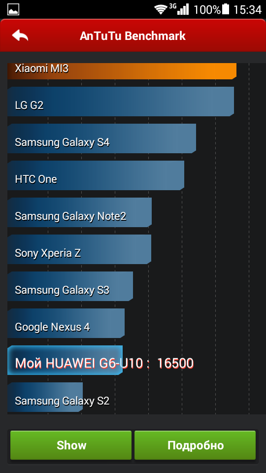Таким образом, Huawei Ascend G6 обладает хорошим процессором, превосходящим по мощности большинство нетбуков, и посредственной графикой, рассчитанной скорее на видео в высоком разрешении, чем на 3D-игры. Среди конкурентов этого Snapdragon примерно эквивалентными будут MediaTek MT8389 и Allwinner A31.
