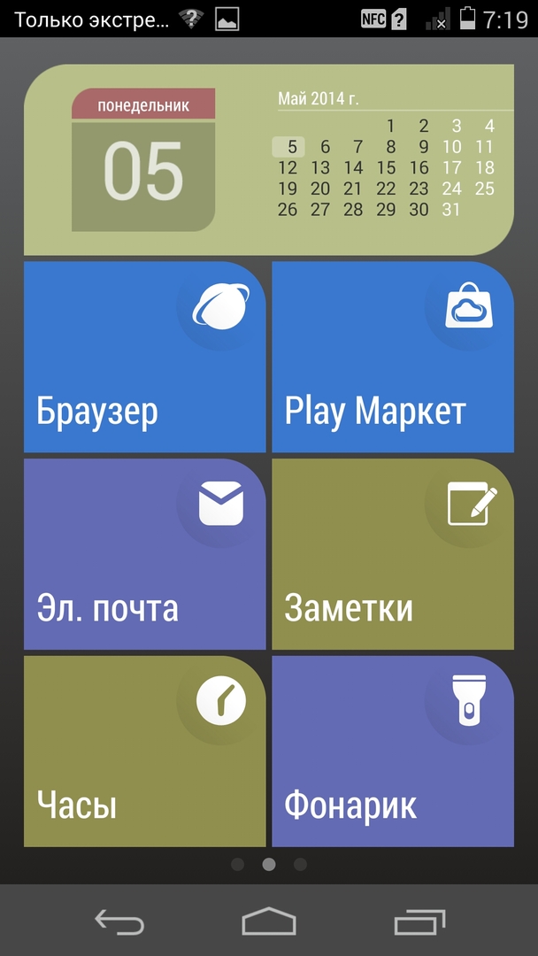 Кстати, у Emotion UI есть второе «лицо», похожее на интерфейс Windows Phone. В нём рабочий стол заполняется плитками вместо ярлыков, а кроме того увеличиваются все надписи.