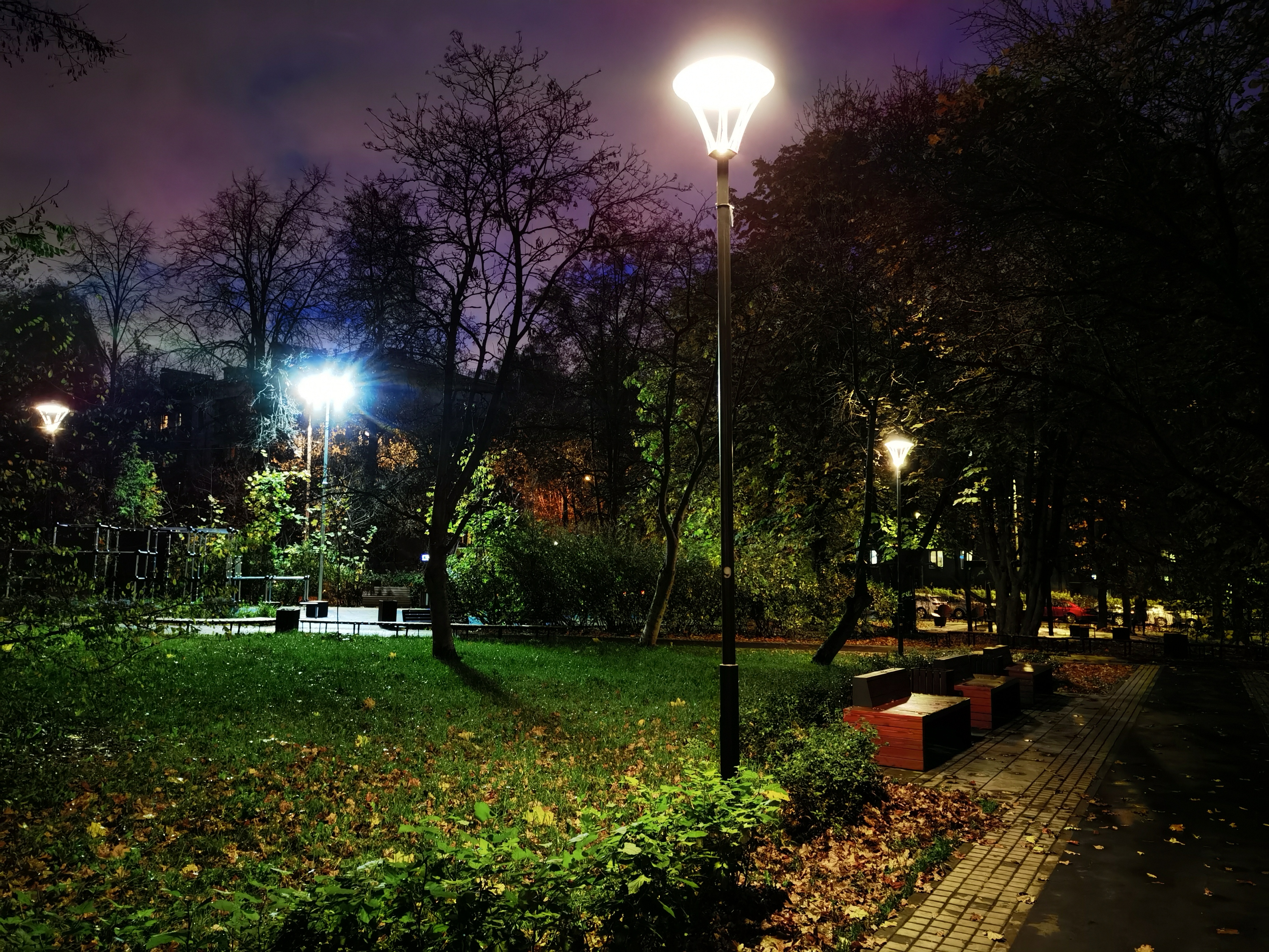 А если вы идёте ночью по освещённой улице или парку и думаете, что в ночном режиме фото будет лучше, то хрена с два — получите выжженное «чернобыльское небо», очертания объектов, будто натёртые фосфором, и совершенно наркоманские цвета.