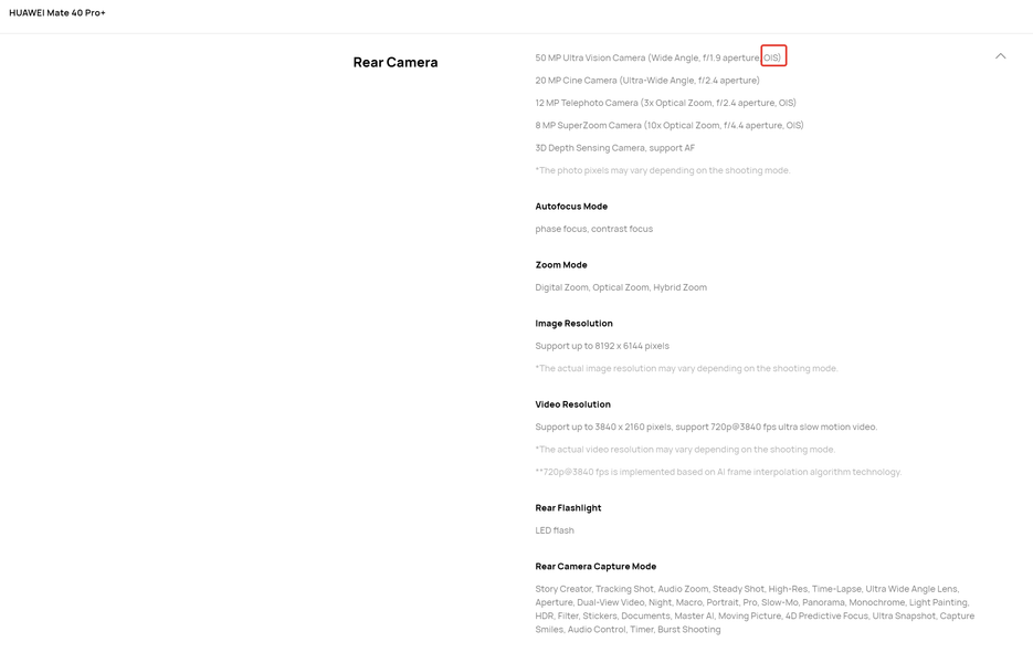 В 2020 году изменилось только то, что Huawei начал уделять качеству съёмки видео больше внимания — начиная с осени 2019 г. и Mate 30 Pro во флагманах для съёмки видео ставят отдельную камеру (она же сверхширокоуголка для съёмки фото «как бы издалека, если в кадр что-то не помещается»), а весной 2020 года Huawei P40 Pro довёл до ума «суперзум 100x», который барахлил на 108-Мп сенсоре флагманов Samsung.
