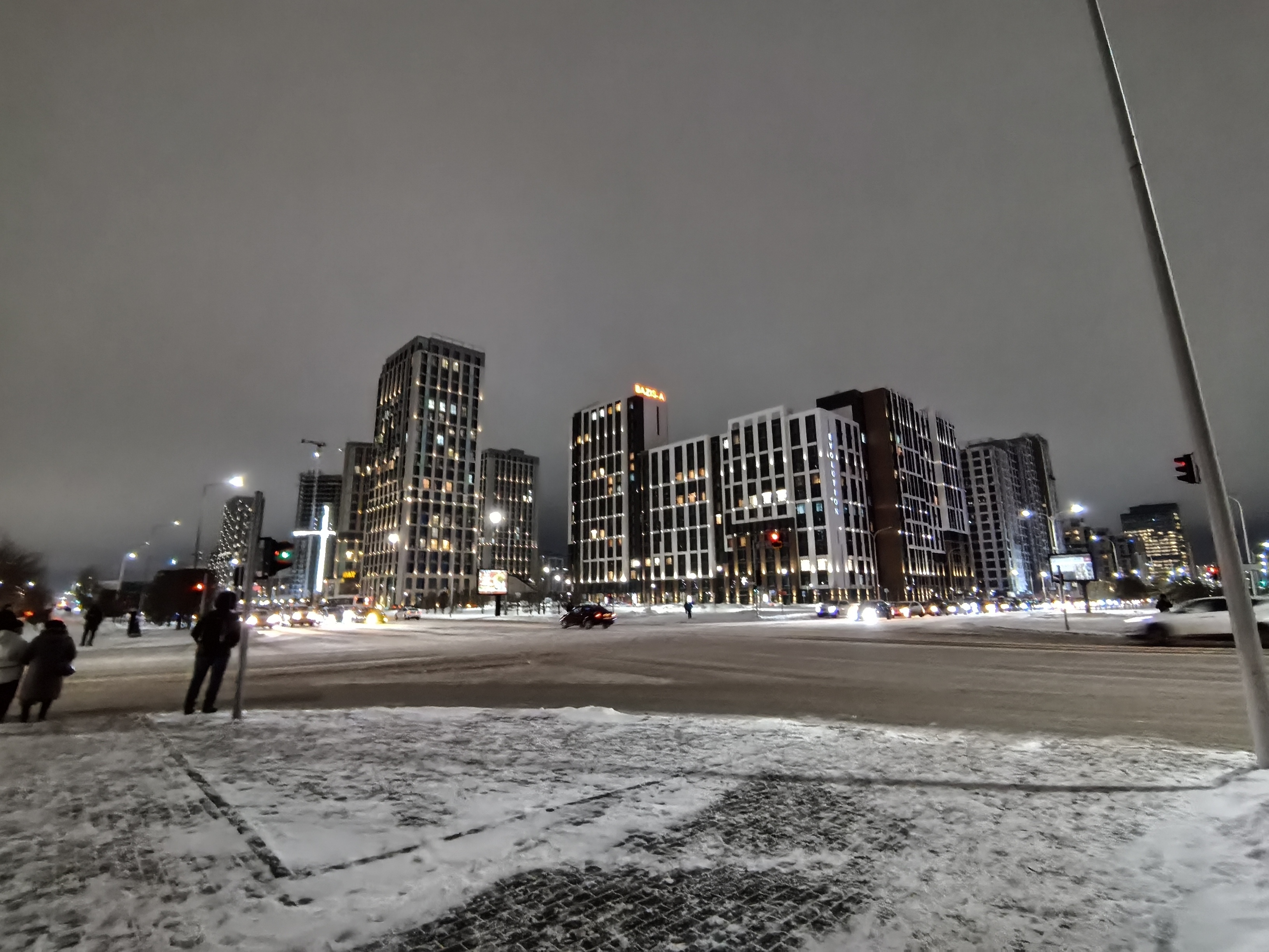 И заодно тестирование зума начнём с позорной фотки в ночное время. Сверхширокоугольная камера тут определённо дешёвенькая, как и много где (флагманским смартфонам Realme и OnePlus передаём привет). Впрочем, такие камеры чаще используют для того, чтобы сфотографировать какой-нибудь памятник вблизи или комнаты квартиры целиком, прежде чем разместить объявление аренды. В обычной жизни почти всё можно вместить в стандартный режим съёмки х1.