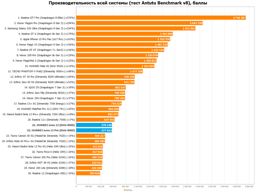 | HUAWEI nova 13 Pro | 7.8 мм | 5000 мАч | 100 Вт |