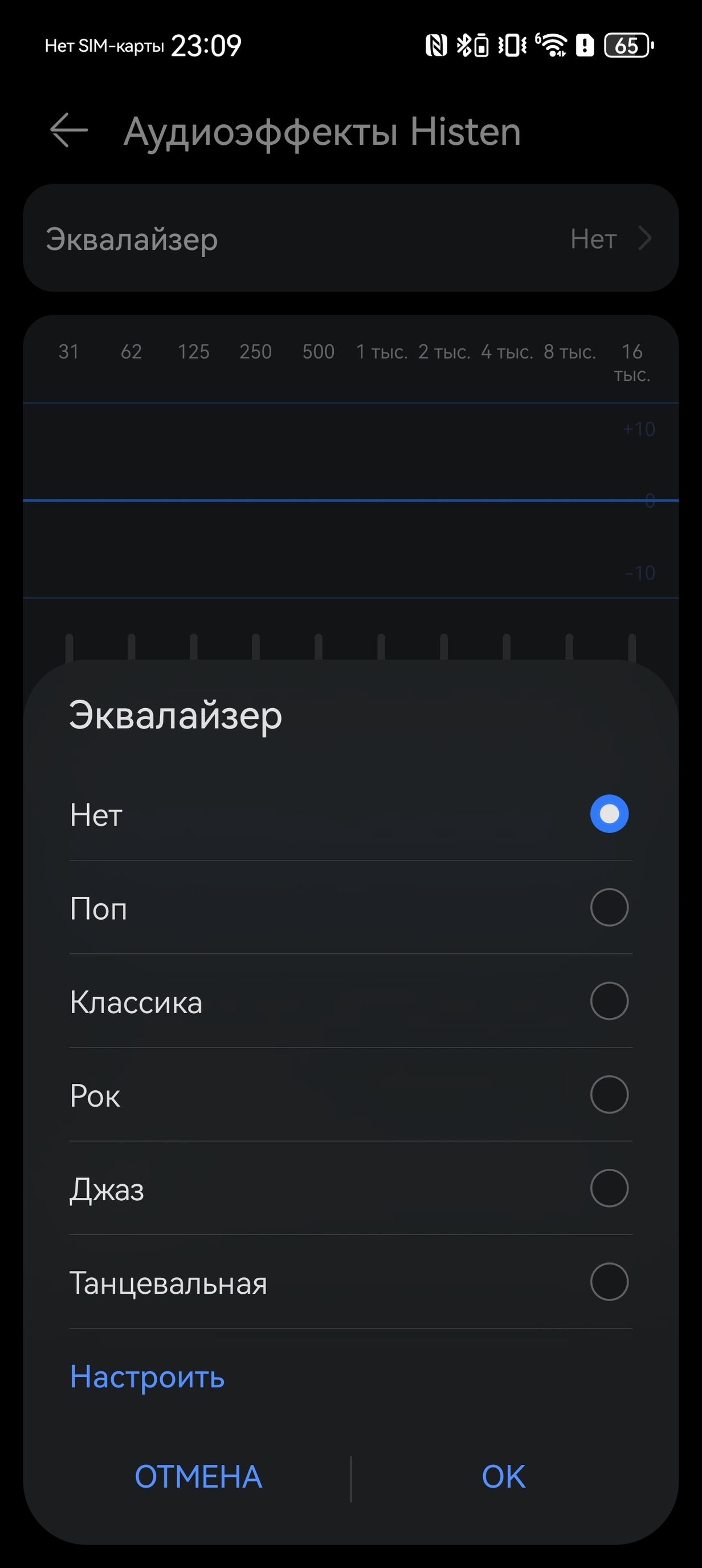 Настроек предостаточно. Такого зaдpoтства, как у HONOR, когда «найдите свою конкретную модель наушников в списке и выберите под неё предустановку звука» нет, но 10-полосный эквалайзер в наличии, усиление басов тоже можно потрогать (но зачем?). Можно даже оставить Авто-режим и звук всё равно будет хорошим — как в Samsung и iPhone, всё неплохо настроено уже «из коробки» — этим Huawei выгодно отличается от всей BBK-гвардии (Realme/Oppo/Vivo/OnePlus) и HONOR, где «подкрутить в настройках» звук не помешает.