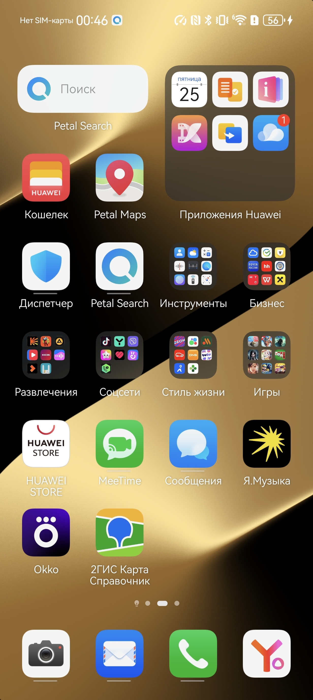 - Очень много всяких мусорных приложений предустановлено. Ну, как «предустановлено» — память в смартфоне они не занимают, просто в папочках находятся, и это не приложения, а ссылки на скачивание и установку приложений из магазина Huawei AppGallery. Можно вообще их не трогать и тогда ничего не скачается. Можно нажать и сразу установить (тот же Т-Банк, Сбербанк Онлайн или Яндекс Карты, или WPS Office — чо бы и нет-то?). А можно удалить эти значки, как удаляете обычное приложение — вам решать. Но всё равно уж очень много всякой ерунды в значках «из коробки».