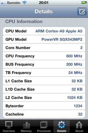 Информация об аппаратной части iPhone 4S (дезинформация о камере останется на совести автора утилиты)