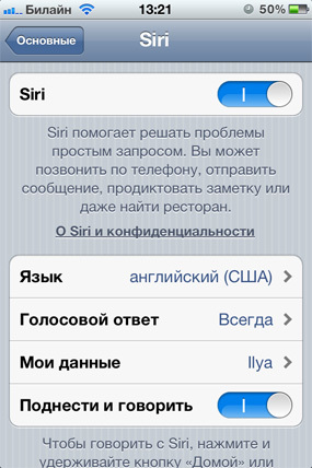 Siri знает о существовании связей между людьми – в первый раз на просьбу «Позвонить жене» она сама попросит уточнить, о ком идет речь, и запомнит ответ.