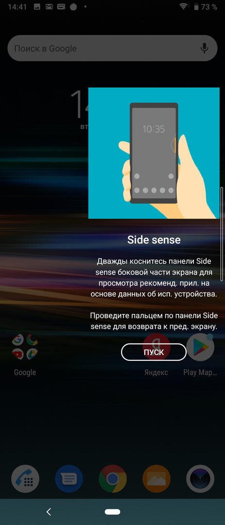 А ещё Sony сделала своё собственное меню Side sense, где находятся ярлыки быстрого доступа различных приложений и функций (можно настраивать). Вот только открывать это меню неудобно - нужно дважды тапнуть по краю экрана. Не по боку смартфона! А именно по краю экрана, где еле-заметная вертикальная полоска!