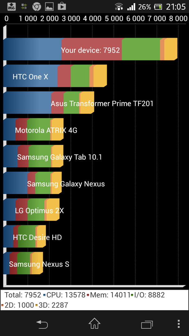 Sony Xperia SP – вовсе не флагманский по начинке, но вполне гармоничный. Его двухъядерный процессор Qualcomm с тактовой частотой 1.7 ГГц более чем достаточен для плавной работы на HD-разрешении, 1 ГБ оперативной памяти – также норма для подобных устройств. Встроенная графика Adreno 320 способна обрабатывать на таком разрешении любые имеющиеся игры, не говоря уже о видео, которое декодируется аппаратно.