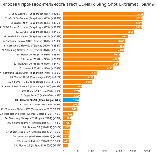 Приятно видеть, что Snapdragon 665 по уровню производительности приблизился к уже относительно старым 710. Да, хотелось бы ещё более мощного процессора, как в Mi 9T, например - в недавнем прошлом отличительной особенностью Mi A2 в сравнении с Redmi Note 6 Pro был как раз чуть более быстрый процессор. Но и с 665-м "снапом" Xiaomi Mi A3 держится неплохо.