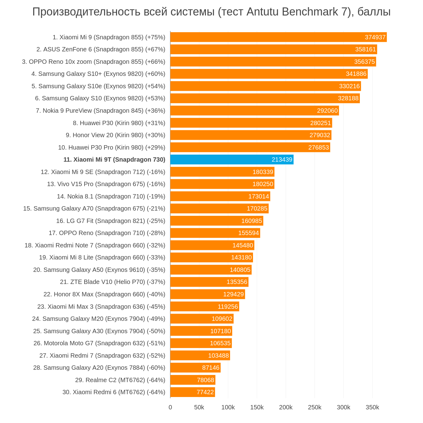 Ещё в официальной рознице у нас остаются Honor 20 (дороже на 3 тысячи рублей, постоянно перегревается, фотографирует примерно так же, автономность хуже), ASUS ZenFone 6 (примерно такого же уровня, но стоит на 15 тысяч рублей дороже) и OnePlus 6T, который дороже на 5-7 тысяч рублей и вообще хуже по всем фронтам, кроме качества тыльной камеры.