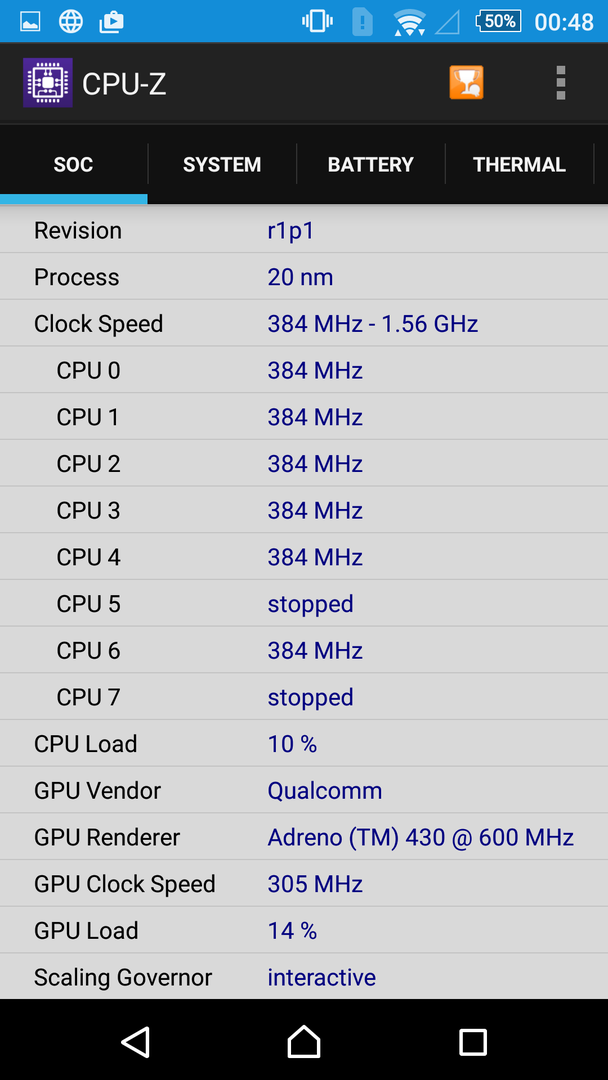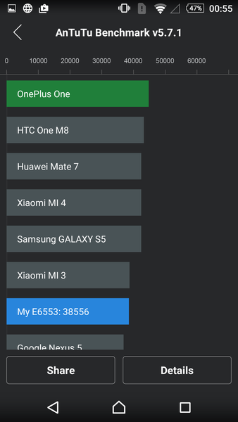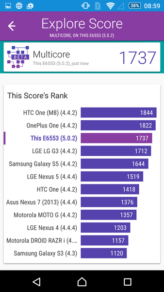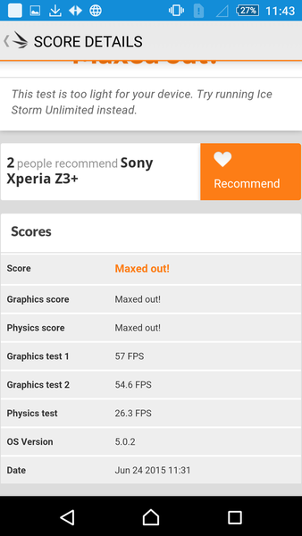 Мы уже сталкивались с этим на примере HTC One M9. Такая проблема обычно решается ограничением максимальной тактовой частоты, что сказывается на производительности. А это в свою очередь отражается на результатах синтетических бенчмарков. Я провел стандартные тесты и могу утверждать, что Snapdragon 810 на Xperia Z3+ работает не в полную мощность.