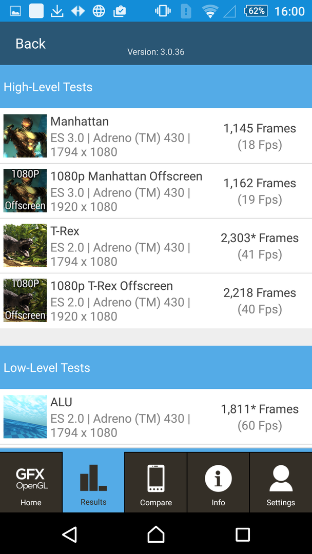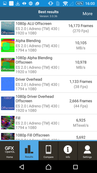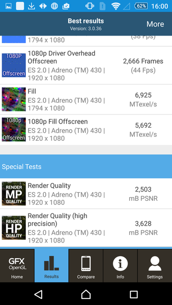 Результаты тестирования Sony Xperia Z3+ в Epic Citadel