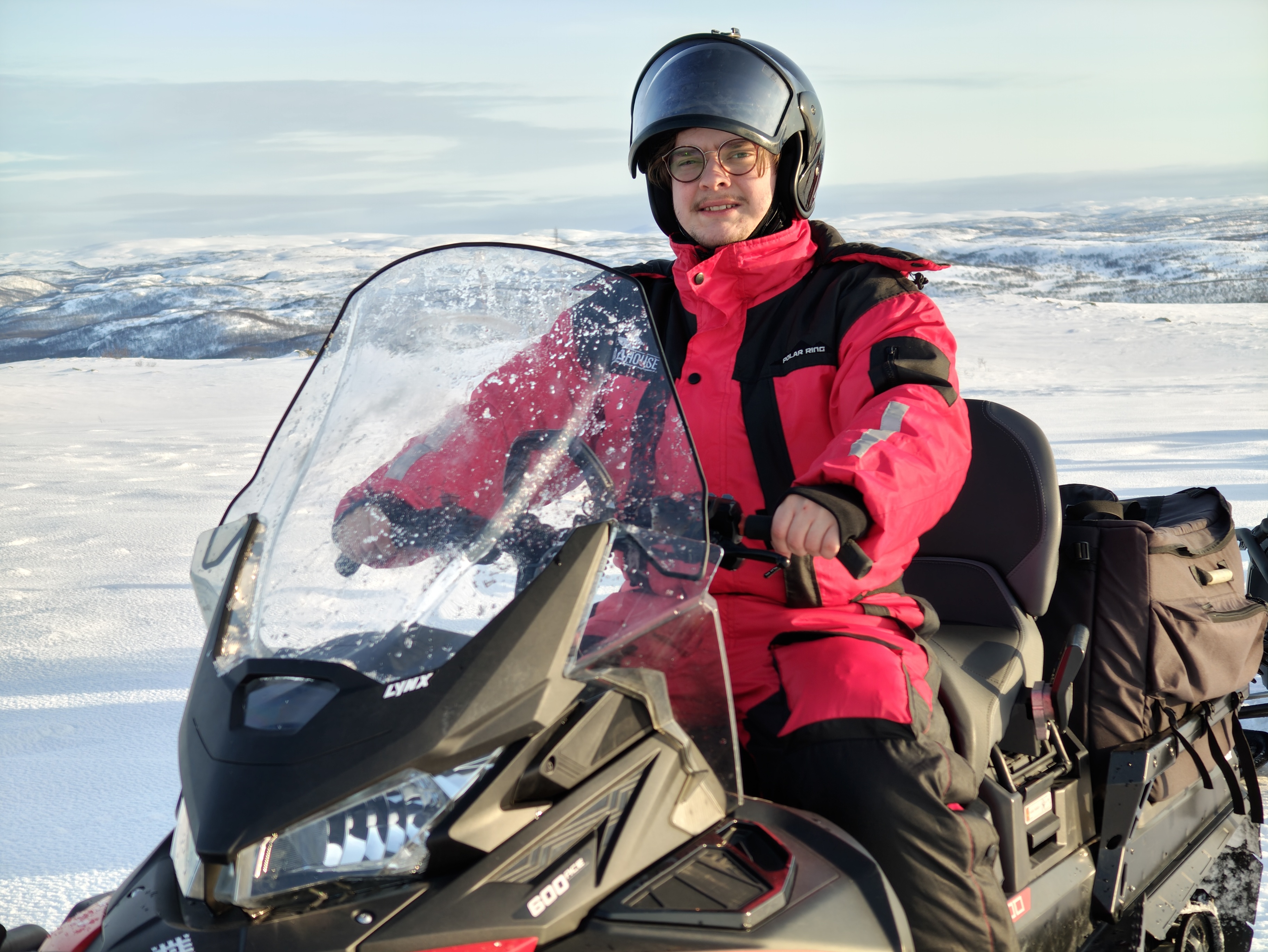Но вот на снимке со снегоходом алгоритмы посчитали нужным вместе с моей физиономией запечатлеть багажную сумку, а руки на руле вышли из чата фокуса и размазались.