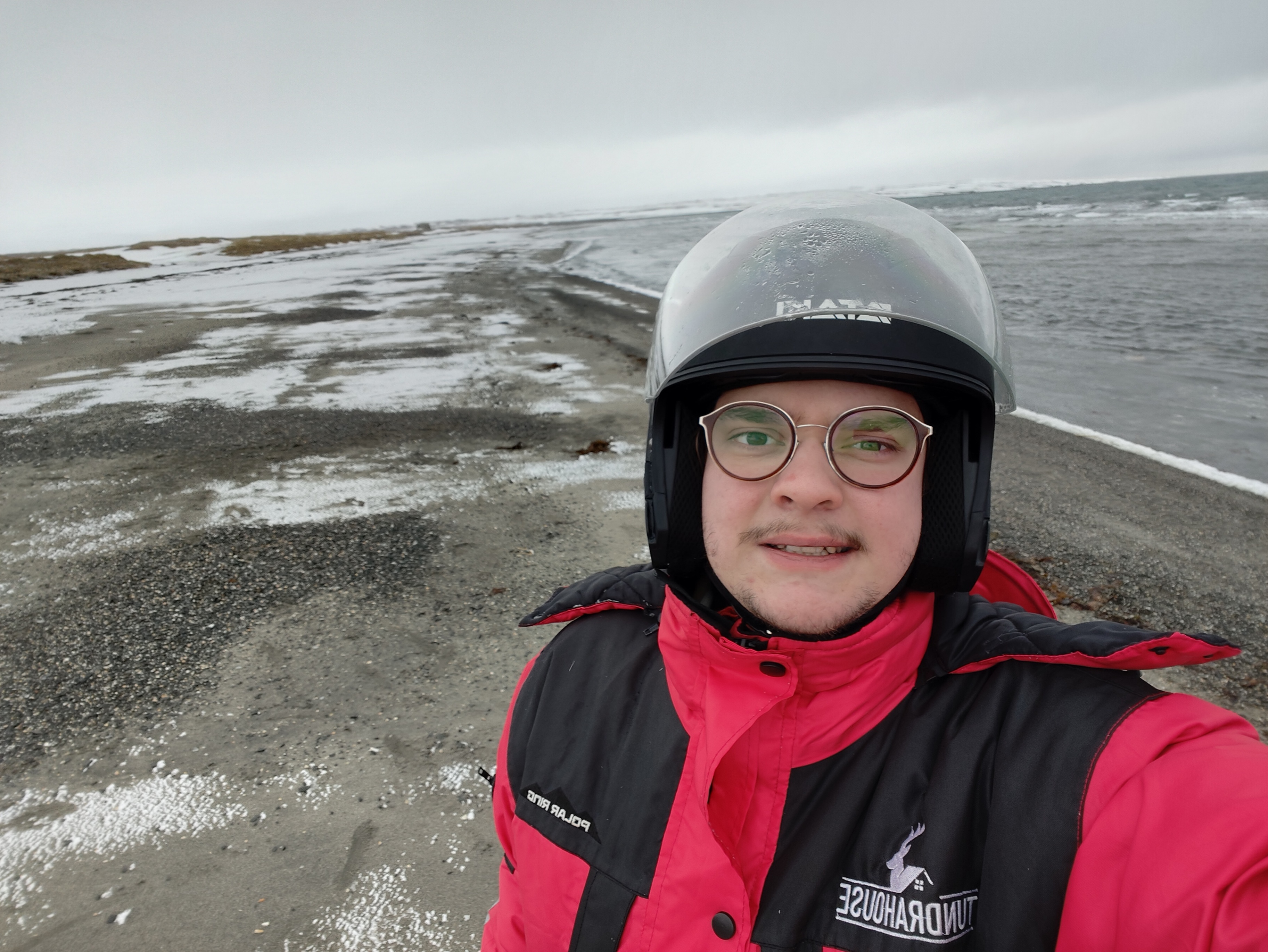 В условиях пасмурного серого неба и на фоне темного холодного арктического моря... у коллеги размазало лицо! И это не один неудачный кадр, который я нашел среди идеальных фотошедевров, а вся серия снимков получилась «так себе». Хотелось бы, чтобы ожидания по групповым селфи совпадали с реальностью и их было бы не стыдно показывать вам в статье в качестве примера «как надо».