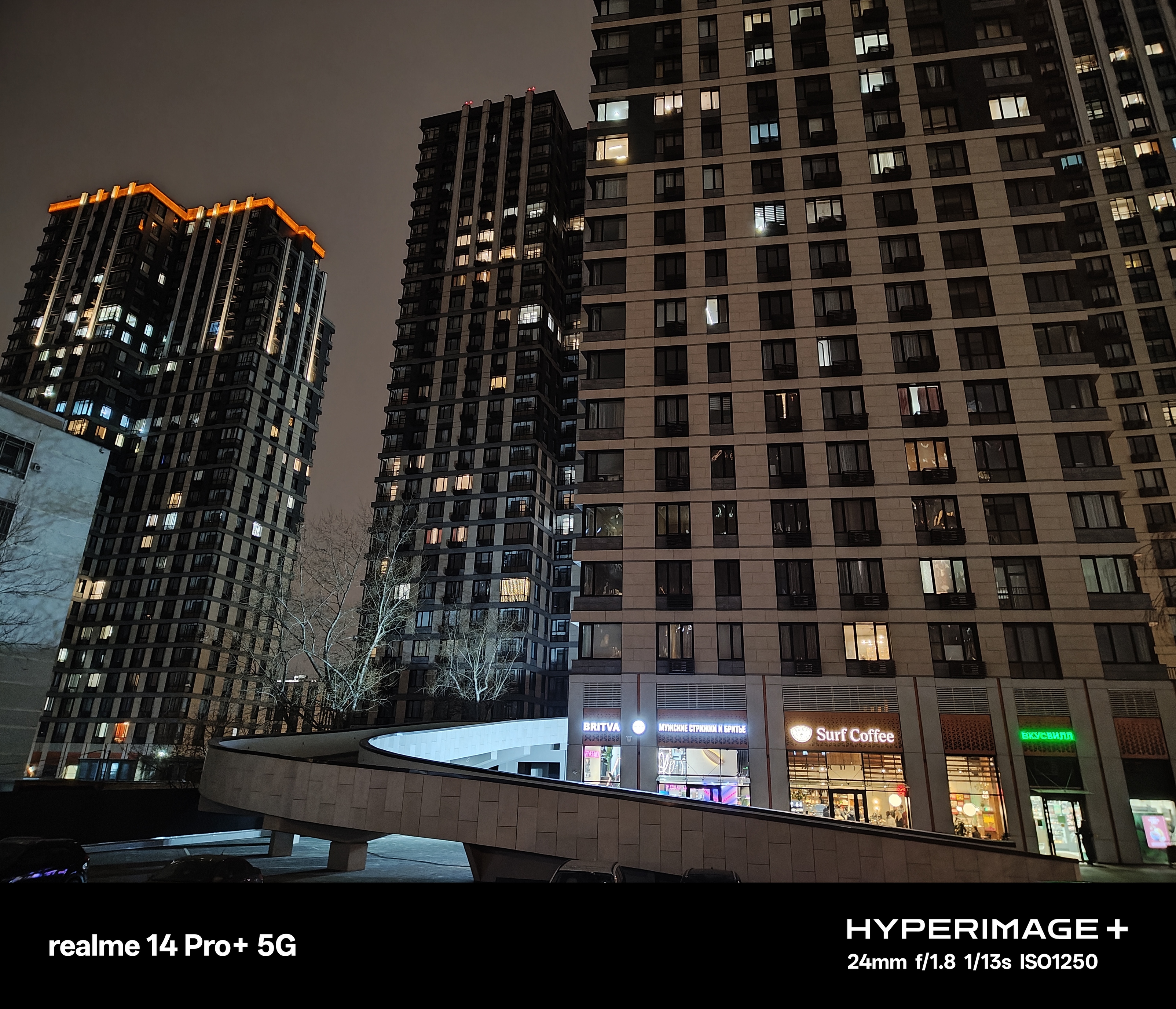 - Сверхширокоугольная камера в ночных фото чёткостью тоже не балует. По большому счёту, хорошие сверхширокоугольные камеры есть только в смартфонах за 70+ тысяч рублей, поэтому Realme 14 Pro+ в этом плане не лучше и не хуже конкурентов.