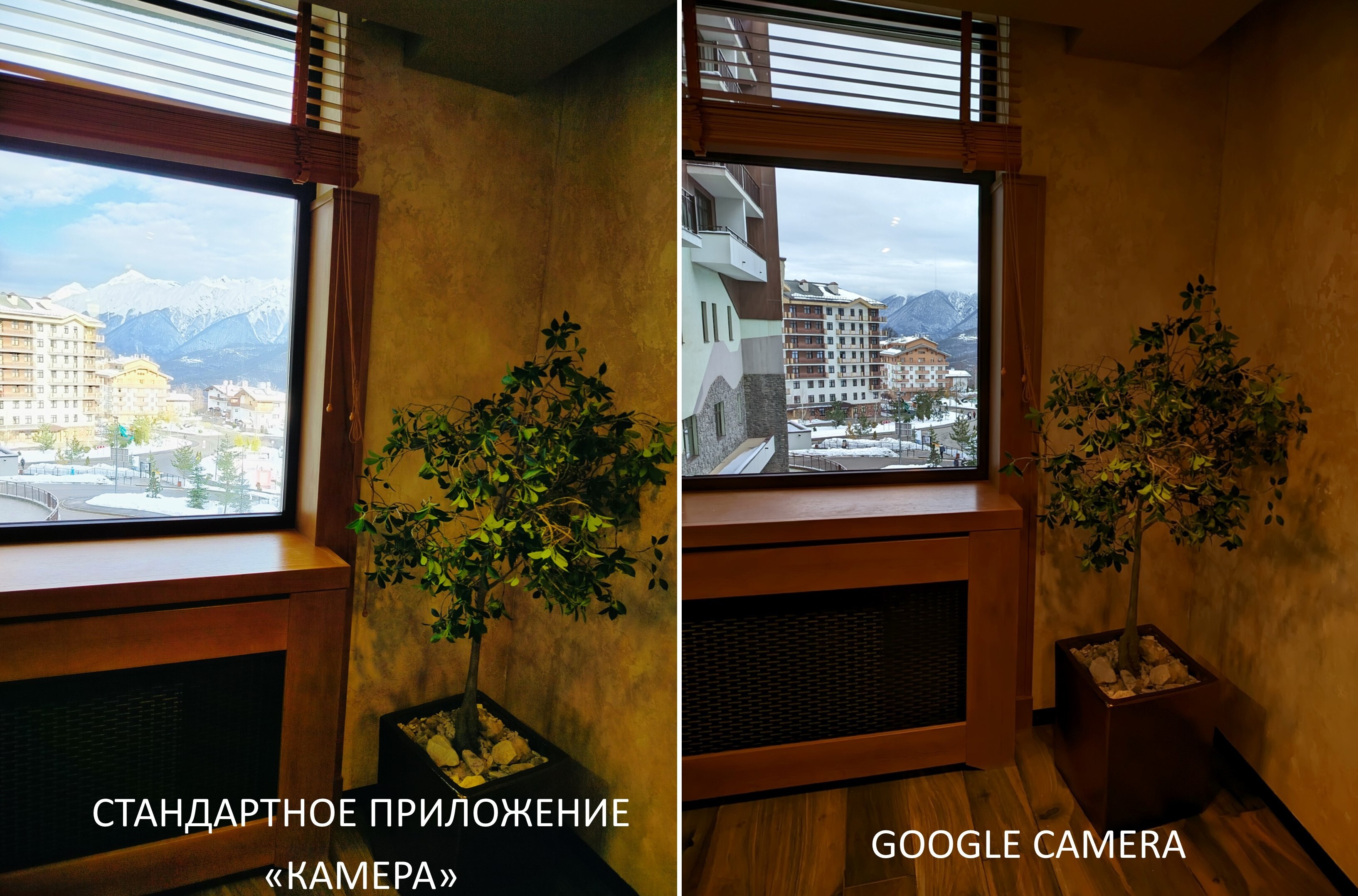 Одна и та же фотка на Realme XT. Сверху — стандартное приложение камеры, снизу — Google Камера
