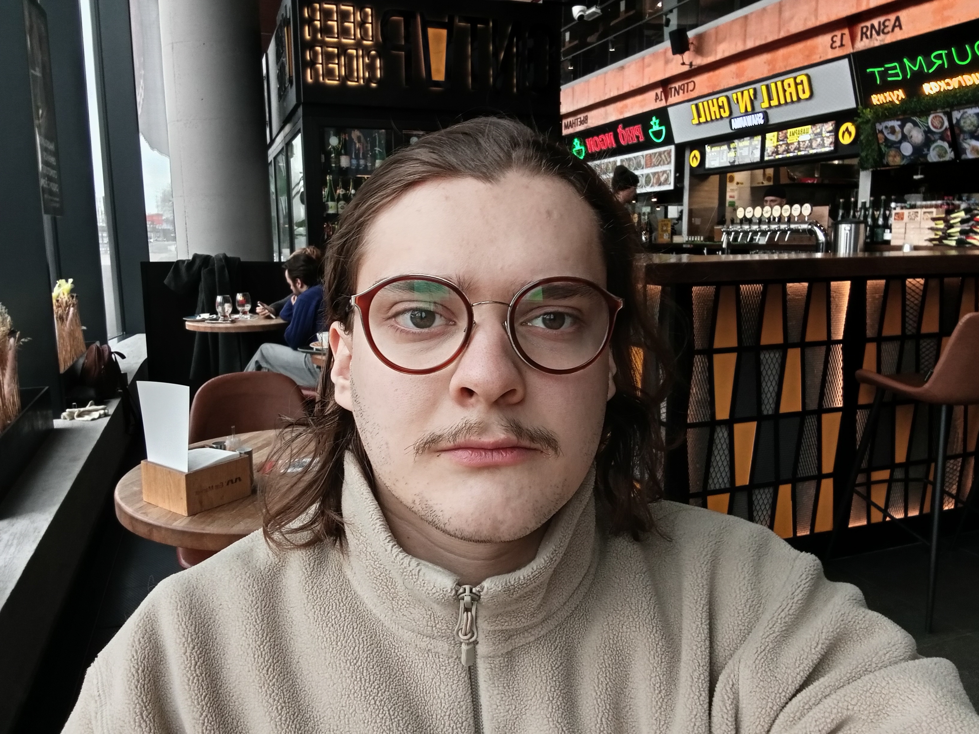 Селфи же снимаются на фронтальную 8-мегапиксельную камеру с апертурой f/2.0. В светлое время суток у меня нареканий к ней нет: все мои усища и волосища сохраняются, задний фон не «плывёт», чёткость не исчезает и цвета вполне себе реалистичные.