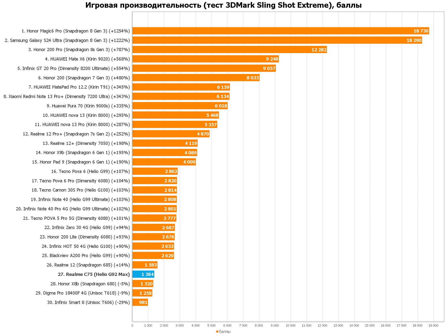 Отличия? Ну, они есть, в целом, только «молодой человек, это не для вас написано». В том плане, что отличия есть, но вы их не заметите. В сравнении с Helio G85, например, G92 Max поддерживает новые модели камер/частоты дисплеев. И, что гораздо важнее, смартфоны с G85/G88 могут комплектоваться медленной памятью eMMC 5.1, либо UFS 2.1/2.2, как того пожелает производитель. А вот в G92 Max (и, соответственно, в realme C75) постоянная память самая современная и быстрая, которая толко бывает в смартфонах до 20 тысяч рублей — UFS 2.2.