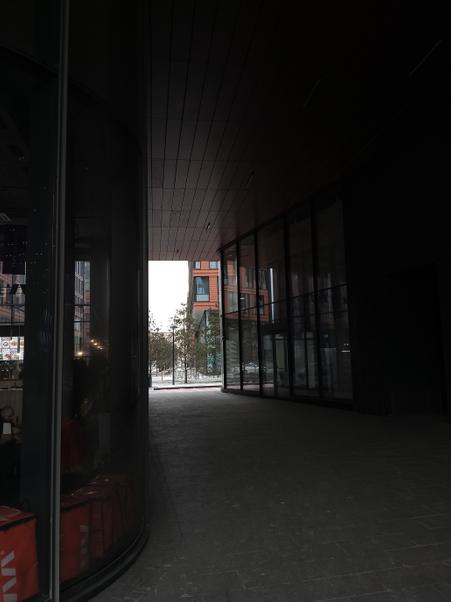 В тёмное время суток камера хорошо отрабатывает в половине случаев. Точно можно отметить то, что ИИ не справляется с обработкой наиболее ярких участков снимка (фонари, вывески, фары и т.д.), поэтому они либо смазываются, либо пытаются превратиться просто в белые пятна. Но стоит приблизить кадр в два раза, как количество деталей уменьшается, а снимок становится немного более чётким.