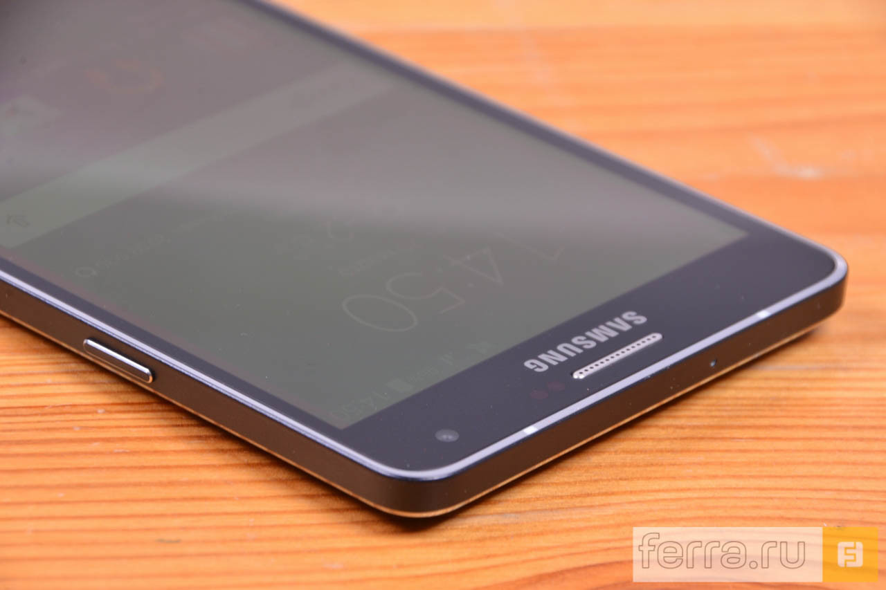 Благодаря скромной толщине смартфон хорошо лежит в руке, а расположение клавиш регулировки громкости и блокировки дисплея оптимально для столь крупного гаджета. Однако за аппаратной клавишей Home приходится совершать «нисхождение» пальцами по боковым граням и задней панели, а то и вовсе «капитулировать» и пользоваться смартфоном двумя руками. Когда и такой уровень комфорт не устраивает — выручит режим масштабирования дисплея, позволяющий сжать в любом углу весь интерфейс Android с оболочкой TouchWiz.