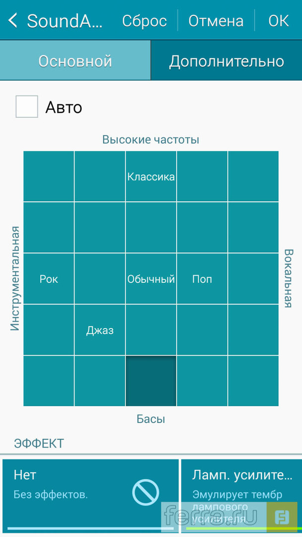Зато Samsung A7 умеет эмулировать «тёплый ламповый звук»! В действительности функция SoundAlive со включенным эффектом лампового усилителя оказывает слабое влияние на звучание, а вместо упакованных в квадраты предустановок меломаны сразу же используют ручную регулировку эквалайзера.