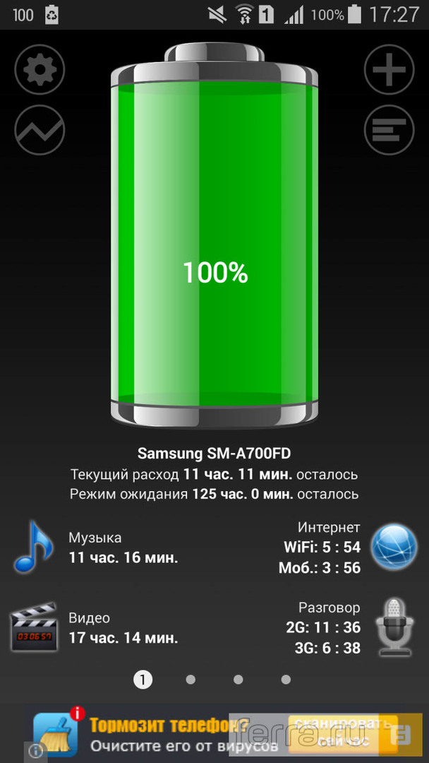 В отличие от платформы MediaTek MT6592, где процессор умудряется «путаться в ядрах» и разогреваться даже в режиме просмотра видео, Snapdragon 615 на деле оказывается гораздо более уравновешенным чипом. Поэтому уровень автономности Samsung Galaxy A7 с учётом 5,5-дюймового яркого Super AMOLED дисплея и 2500 мАч ёмкости аккумулятора выглядит достойно.