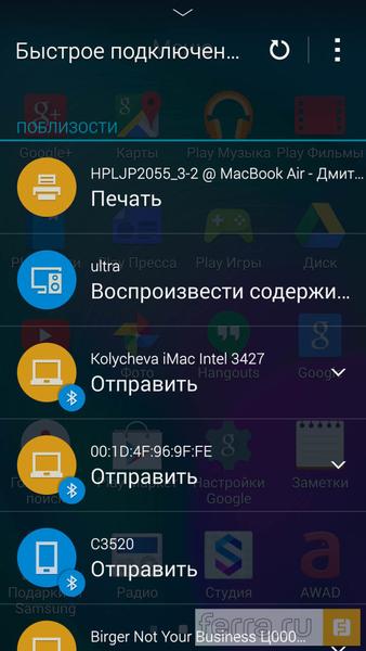Отсутствие поддержки HDMI или MHL компенсируется возможностью быстрой передачи файлов или воспроизведения по беспроводным сетям — все доступные устройства, от мобильников с включенным Bluetooth до принтеров или беспроводных дисплеев с активированным Wi-Fi, находятся в распоряжении владельца Galaxy A7. Сейчас всё это выглядит забавой для гиков, но и про Wi-Fi сам по себе не так давно бросали аналогичные фразы.