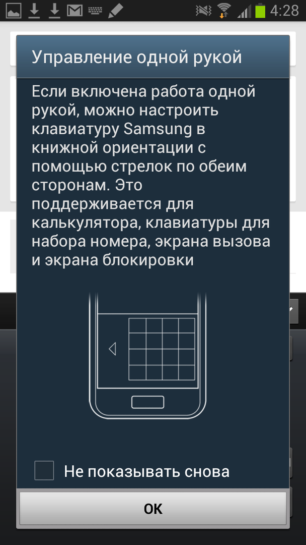 Клавиатура для работы одной рукой на Samsung Galaxy Note II