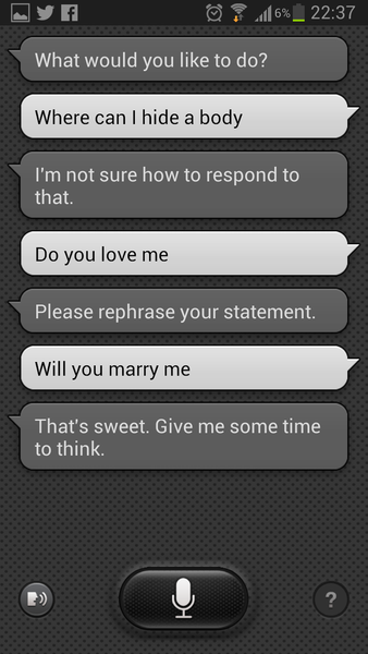 - S Voice — голосовая помощница, ответ Samsung на Siri. По-русски так и не заговорила, хотя корейцы говорили про осень. Ну, пока лишь сентябрь. Сильно смышленей S Voice не стала, зато дурацкие вопросы про любовь больше не заставляют её конфузиться;