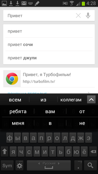 Другая особенность новой клавиатуры — в том, что она предугадывает следующие слова, которые вы ещё даже не начали писать. Рассчитано это на сугубо бытовые речевые штампы. Иногда срабатывает, чаще — нет.