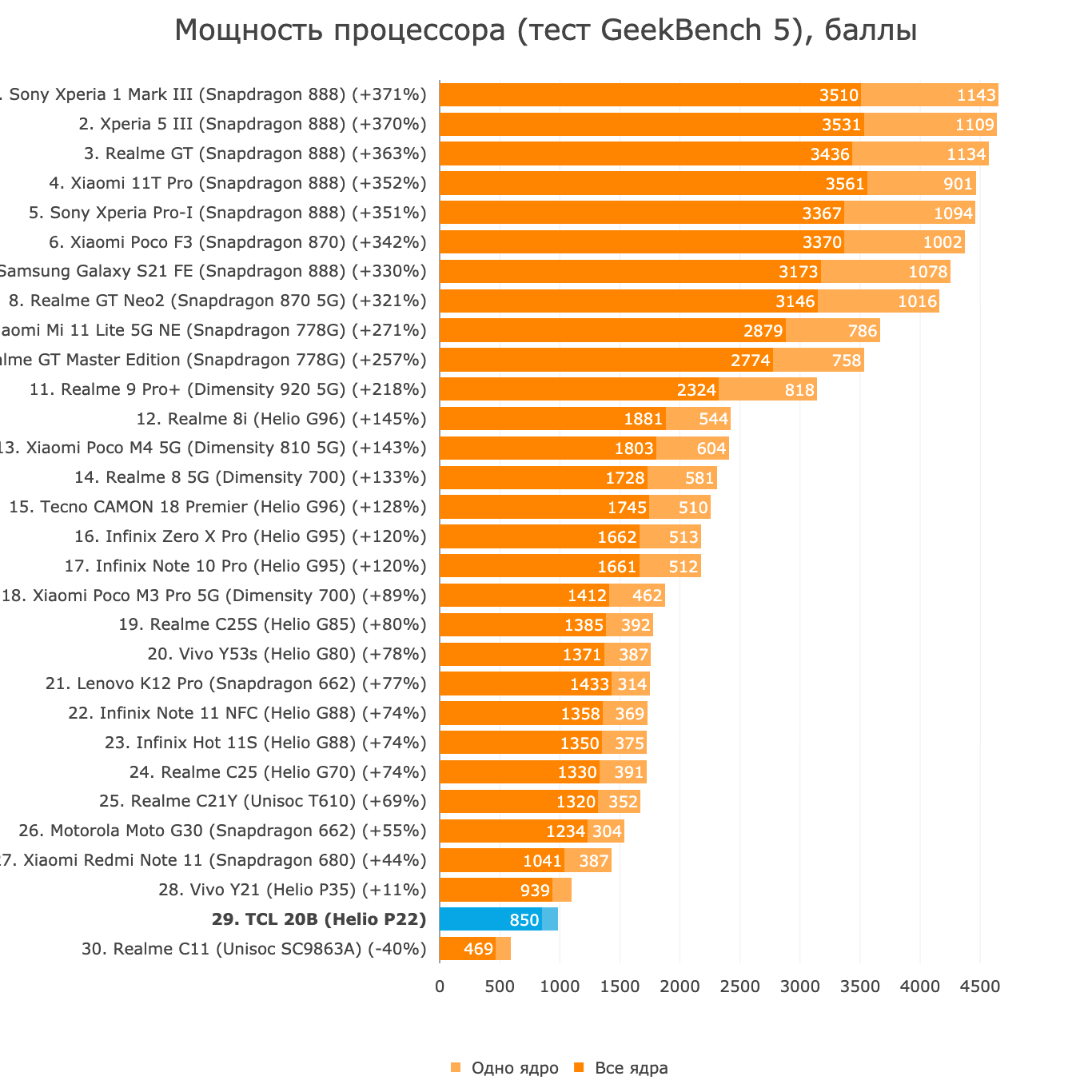 А Helio P22 — разжалованный из младших сержантов в рядовые процессор, на замену которому пришли Helio G70/G80 — и вот эти две модели уже действительно стали шагом вперёд, как вы можете видеть на графиках.