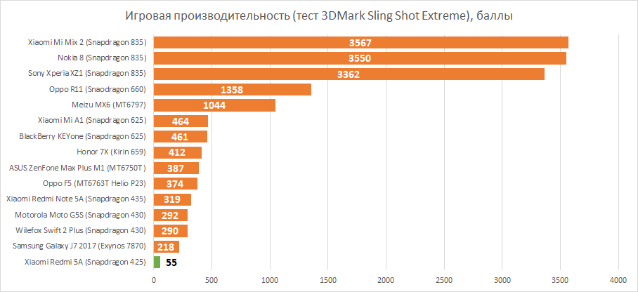 Как я уже упоминал в самом начале, система-на-кристалле досталась Xiaomi Redmi 5A от его предшественника. Как вы понимаете, слабенький 4-ядерный Qualcomm Snapdragon 425 за год не стал мощнее. Но, конечно, если никто и не ожидает от одной из самых недорогих моделей мощной начинки, то уж хотя бы небольшое обновление, хотя бы для галочки, просто неприлично не сделать. Я уже не говорю о том, что покупателей надо хотя бы заинтересовать новой моделью, но кто же захочет переходить с 4A на 5A, если у него остался ровной такой же процессор? Тем не менее, за время изучения смартфона никаких заметных подтормаживаний замечено не было. Веб-браузинг, пролистывание всяких фейсбуков-интсаграмов — всё работает плавно. Но, например, сделать снимок с включённой функцией HDR — это требует времени, и потому быстро надоедает.