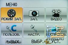 Внешний вид главного сенсорного экрана навевает воспоминания о камерах Sony NEX: практически идентичный внешний вид, два ряда по шесть иконок.