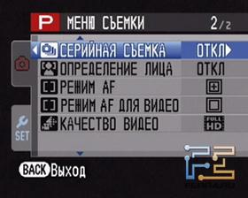 Поскольку камера очень простая, не стоит ожидать от нее широких возможностей по настройке экспозиции. Тут не предусмотрен даже выбор режима работы экспозамера, а установка экспопары производится либо в полностью автоматическом, либо в программном режиме. Второй отличается лишь тем, что вы можете ввести коррекцию экспозиции в диапазоне от -2 до +2 с шагом в треть ступени.