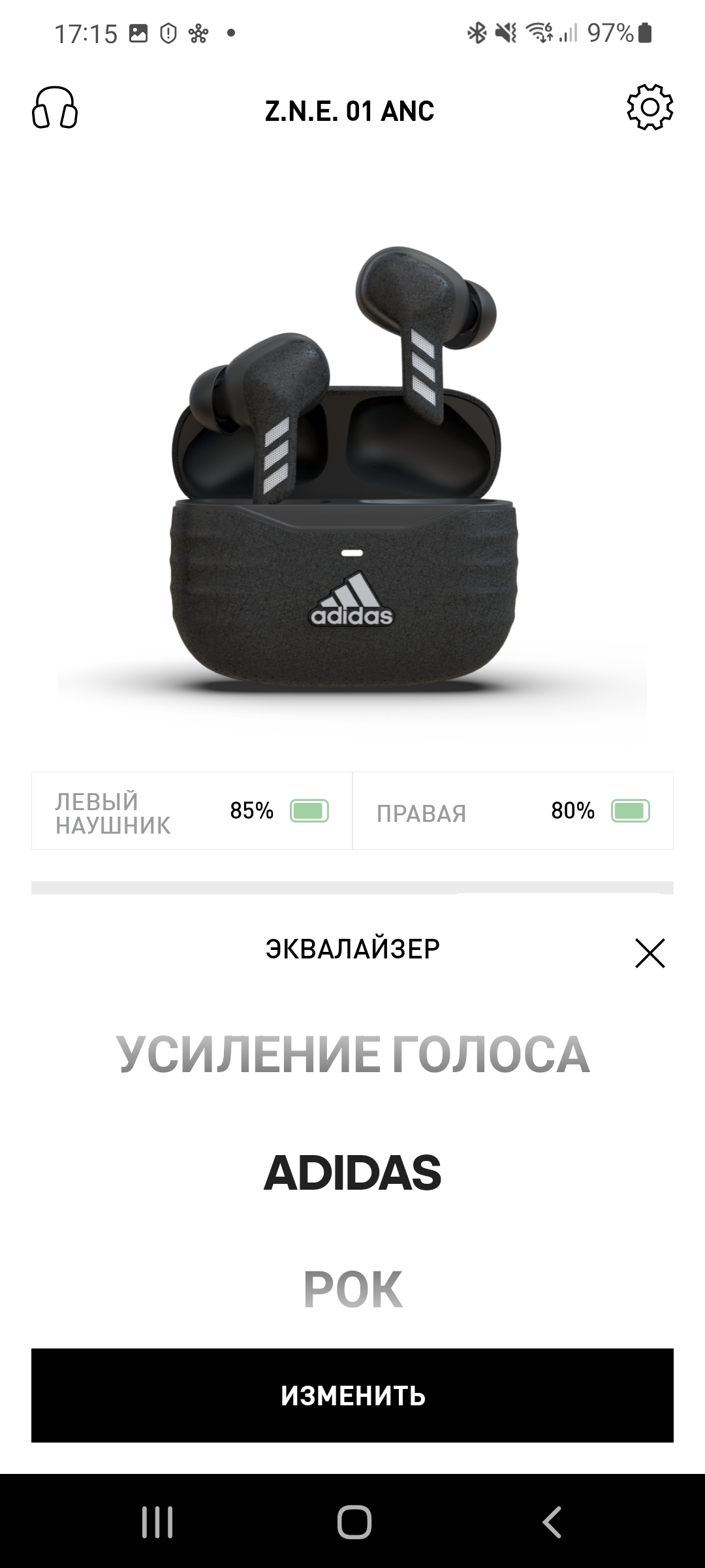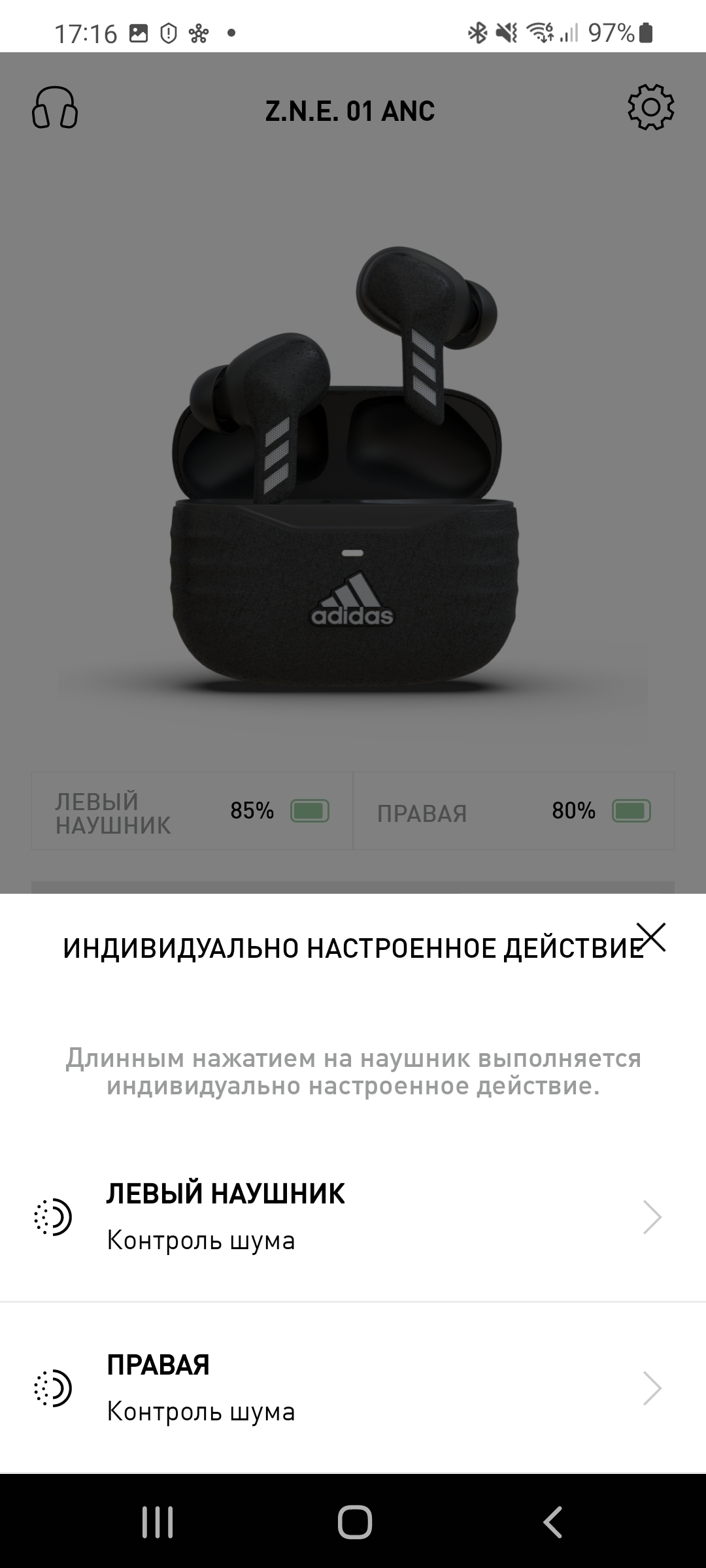 Активное шумоподавление в Adidas Z.N.E. 01 ANC работает весьма специфично. Тут, опять же, влияет и форма ушей, потому что даже с амбушюрами максимального размера у меня эффект был довольно слабый. Голоса не глушатся почти никак, фоновые шумы — только низкие частоты. Да и в целом, основной эффект от включённого шумодава здесь — это именно басы в музыке. Именно в режиме ANC достигается тот самый глубокий бас. Но, ещё раз, если вы хотите посидеть в тишине в транспорте — лучше присмотреть другие модели.