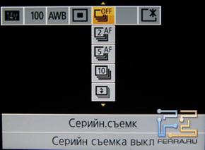 Сзади правее экрана находится привычный для компактов Panasonic набор органов управления: клавиша выбора режима съёмки, ползунок-переключатель режимов воспроизведения и съёмки, круглый многофункциональный манипулятор с клавишей ввода/входа в меню по центру, а также клавиши настройки отображения информации на дисплее и вызова быстрого меню.