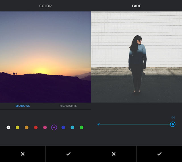 Instagram дважды обновился в апреле. В начале месяца в приложении появились новые инструменты по обработке изображений, а именно – Color и Fade. Первый позволяет накладывать слой с характерным цветным оттенком (желтым, оранжевым, красным, розовым, лиловым, синим, пурпурным и зеленым) и может использоваться как для исправления баланса белого, так и просто забавы ради. Fade же работает по аналогии с другими редакторами, снижает контраст и слегка уменьшает насыщенность, давая на выходе рафинированные хипстерские цвета.