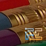 Для оценки шумности использовался следующий метод: фотографировалась группа разноцветных объектов со всеми значениями чувствительности в формате RAW с последующим конвертированием в TIFF с помощью комплектного софта со стандартными настройками. Баланс белого был выставлен автоматически. Съёмка тестовой мишени также была проведена при активированном режиме шумоподавления. Кроп-фрагменты создавались в Photoshop CS5 с последующим сохранением в формате JPEG с минимальным коэффициентом сжатия. На снимке, приведенном ниже, зелеными квадратами обозначены области кроп-фрагментов. Тестовые кадры были отсняты с чувствительностью от 200 до 12800 единиц в ISO-эквиваленте. Стоит отметить, что камера позволяет снимать с автоматическим брекетингом по чувствительности. Функция весьма редкая, но всё же иногда может оказаться полезной.