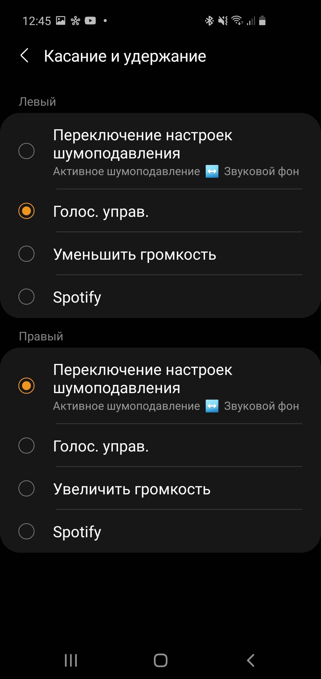 Также можно выбрать активацию голосового ассистента Google выбрав пункт “Голос. управ.”. Плюс, есть интеграция со Spotify.
