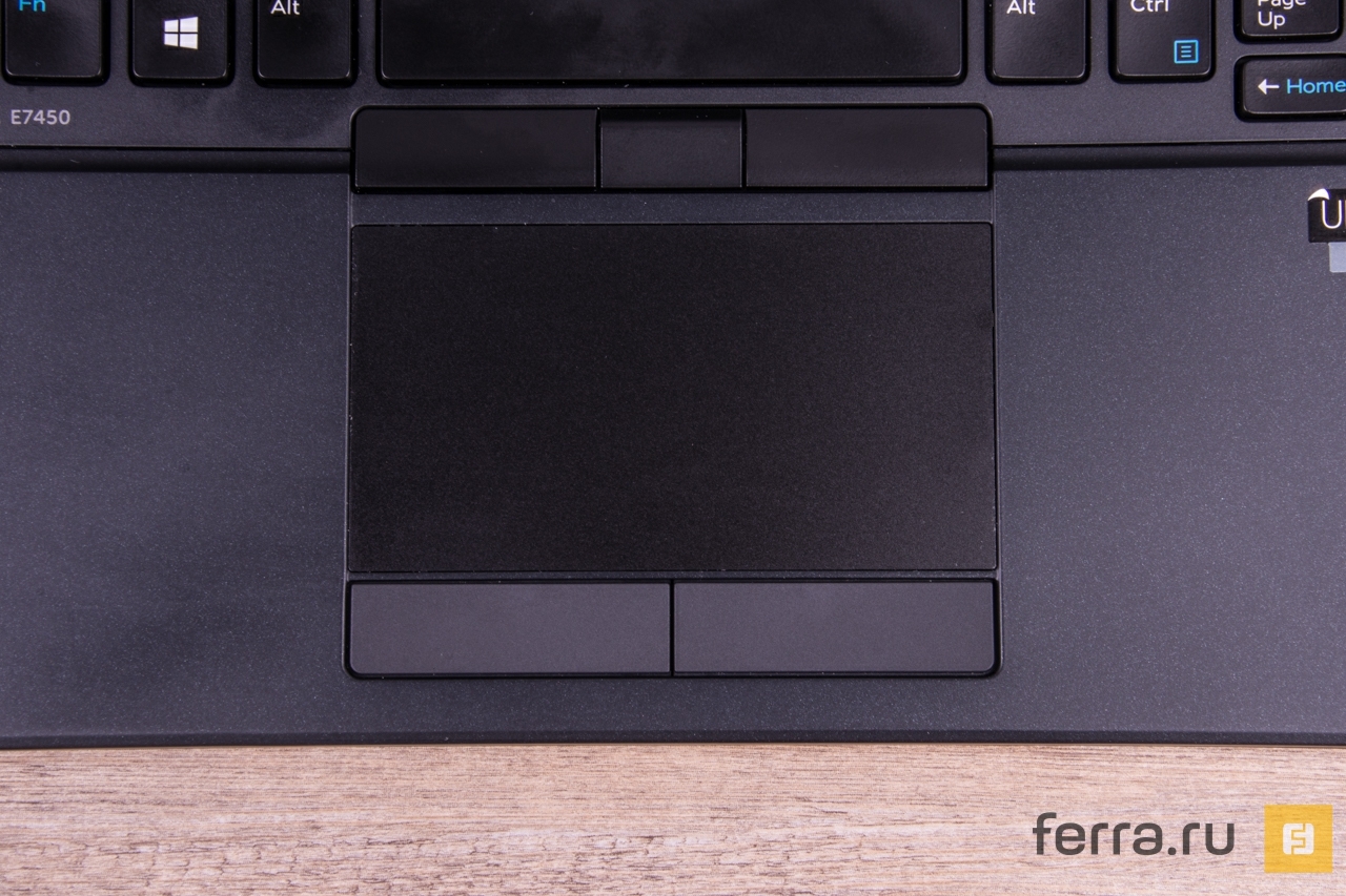 Печатать на Latitude E7450 удобно — клавиши на 14-дюймовом корпусе расположились вольготно (многие 15,6-дюймовые ноутбуки в сходную площадь вписывают цифровую клавиатуру), матовое покрытие не позволяет пальцам скользить при вводе, ход клавиш средний, срабатывания мягкие и тихие. Для набора текста в темноте предусмотрены два уровня подсветки.