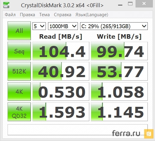 Жёсткий диск в HP Envy 15 x360 показывает неплохие результаты по меркам своего класса. Правда, они мало что дают на практике — в сравнении с ноутбуками, укомплектованными SSD, наш Envy 15 x360 всегда будет работать неуклюже.