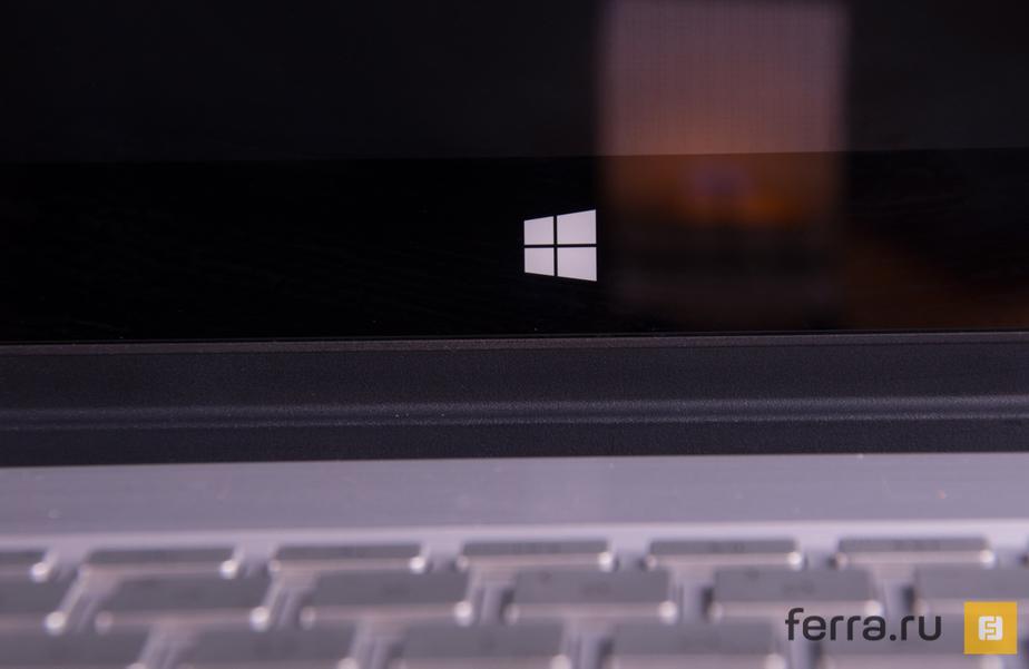 Правда, качество крышки совсем не воодушевляет: вопреки массивным габаритам, она легко прогибается в середине и пружинит даже при малейшем давлении — на дисплее в такие моменты появляются круглые пятна. Достаточно будет плотно набить дополнительный карман сумки, где будет лежать ноутбук, чтобы однажды повредить недешёвую 15-дюймовую сенсорную матрицу из-за податливого пластика на верхней панели.