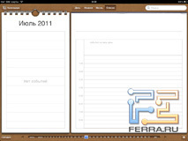 Стандартный интерфейс Android спрятан за оболочкой HTC Sense 3.0. Такая же стоит и на недавнем HTC Sensation. Но поскольку, Sensation — это смартфон, а Flyer — планшет, в интерфейсе есть некоторые различия. Как уже говорилось, с Flyer нельзя звонить, соответственно, все элементы интерфейса, связанные с телефонными функциями, отсутствуют. Виджеты оптимизированы под более высокое разрешение. Мне очень нравится, как выглядит календарь — исключительно удачный компромисс между минималистичным оформлением и информативностью. Можно сравнить с календарем из iPad 2.