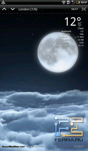 Системная строка состоит из двух вкладок, на одной из которых отображаются уведомления, на другой — регулятор яркости и переключатели беспроводных модулей. Однако наиболее впечатляющая вещь — это приложение погоды. В полноэкранном виде выглядит совершенно сногсшибательно. Вне всякого сомнения, это самое красивое, что есть на рынке.